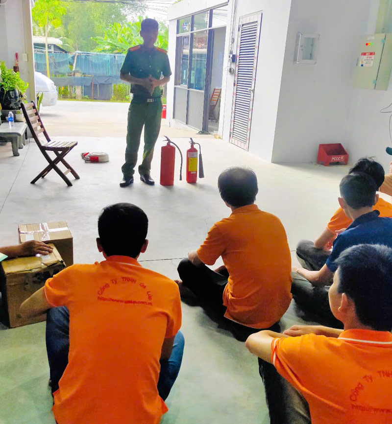Buổi tập huấn được tổ chức với sự phối hợp của lực lượng Cảnh sát PCCC địa phương, đảm bảo tính chuyên nghiệp và sát thực tế. Các nội dung được triển khai bao gồm: