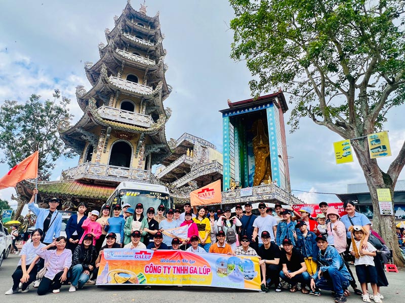 Chùa Linh Phước : Nằm cách trung tâm thành phố khoảng 8km, chùa Linh Phước, hay còn gọi là Chùa Ve Chai, nổi tiếng với kiến trúc độc đáo được làm từ hàng triệu mảnh ve chai và gốm sứ. Tại đây, các thành viên không chỉ được chiêm ngưỡng vẻ đẹp của ngôi chùa mà còn có cơ hội tìm hiểu về văn hóa Phật giáo, thư giãn tâm hồn và nạp lại năng lượng tích cực. Đặc biệt, tượng Phật Quan Âm bằng hoa bất tử cao nhất Việt Nam là điểm nhấn khiến ai cũng phải trầm trồ và cảm nhận sự linh thiêng, thanh tịnh. Chuyến tham quan Chùa Linh Phước đã mang lại cho các thành viên Galup những phút giây yên bình và những kỷ niệm khó quên.