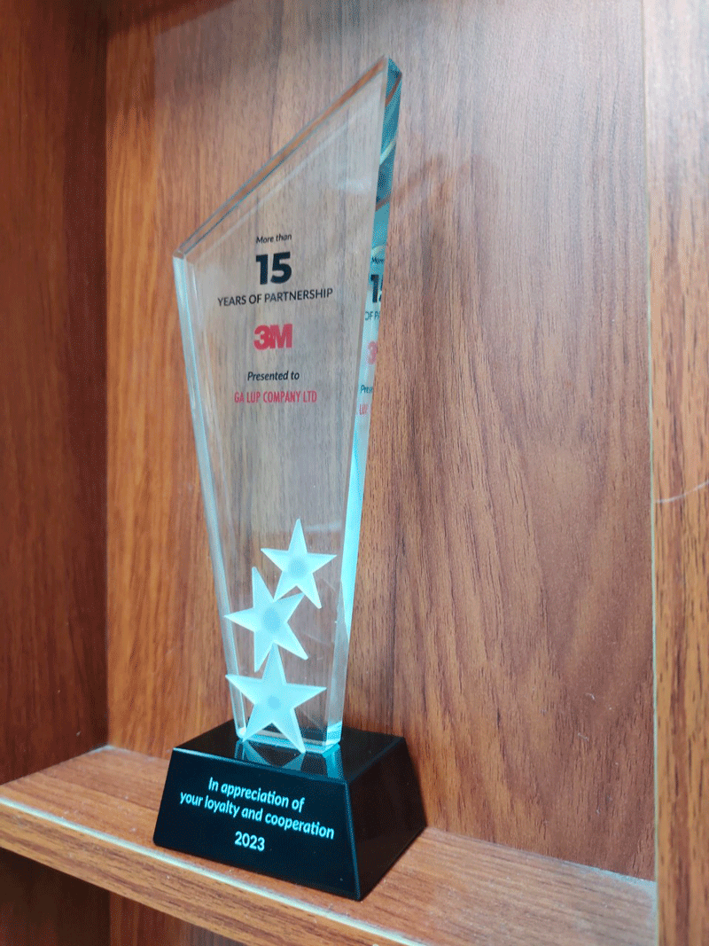 Nhận được sự tuyên dương khi là đại lý lâu năm của 3M, đó như là một minh chứng cho những nỗ lực và tiềm lực của Galup trong suốt thời gian làm việc với 3M. Điều đó như một khẳng định mạnh mẽ rằng Galup là một đối tác tin cậy và uy tín mang đến những giải pháp tốt nhất cho khách hàng.