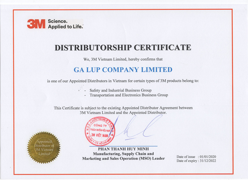 Chứng nhận nhà phân phối của 3M của Galup