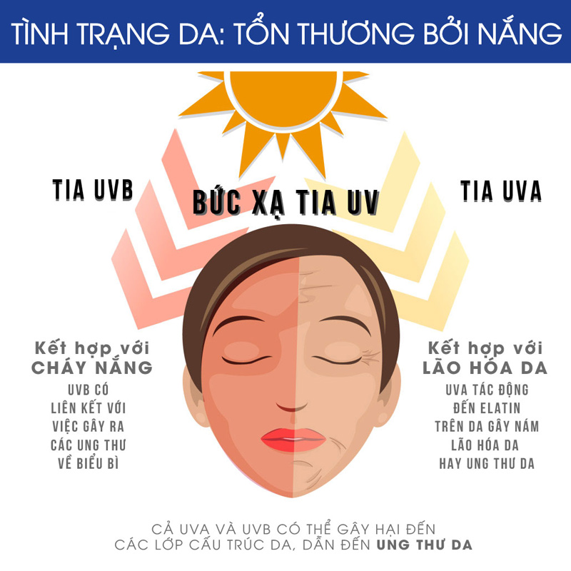 - Nguy cơ ung thư da: Tiếp xúc với tia UV trong thời gian dài là nguyên nhân hàng đầu gây tổn thương DNA tế bào và dẫn đến ung thư da.