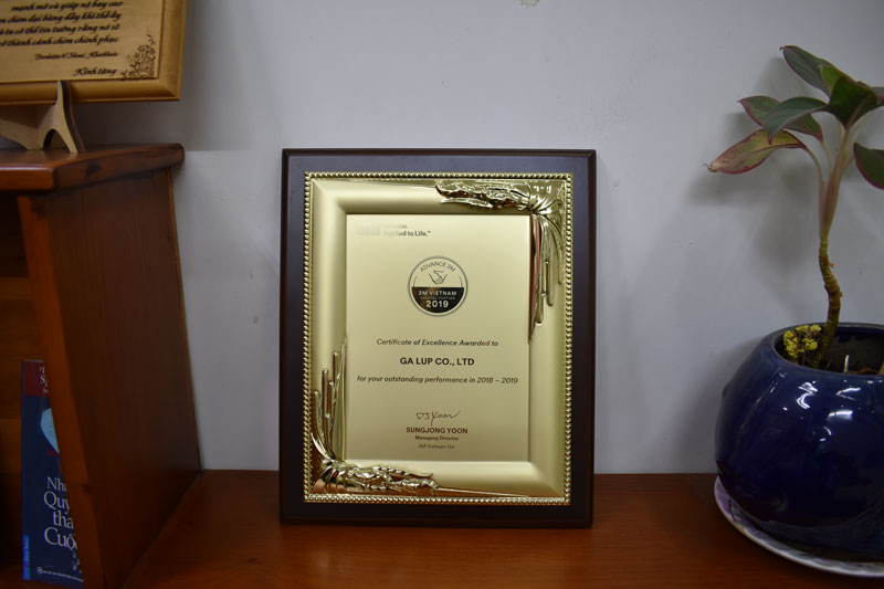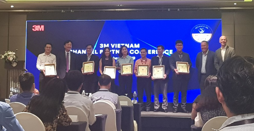 Lúc ấy tôi vẫn chưa biết tấm ảnh này là sao và anh Thương đẹp trai của mình đang nâng tấm bằng khen hay chứng nhận gì. Hỏi ra mới biết đây là chứng nhận của 3M trao cho 7 đại lý có doanh số lớn nhất, dịch vụ rất tốt ở thị trường Việt Nam. Còn 3 người không có bằng khen là những người đứng đầu 3M.