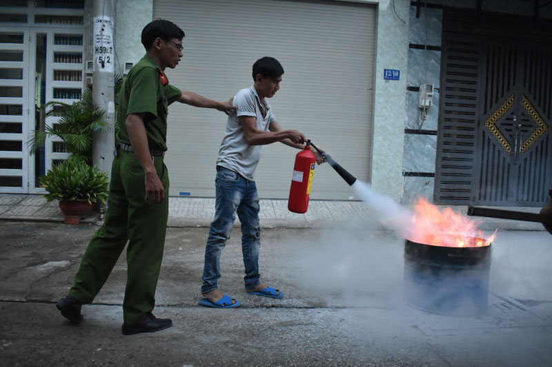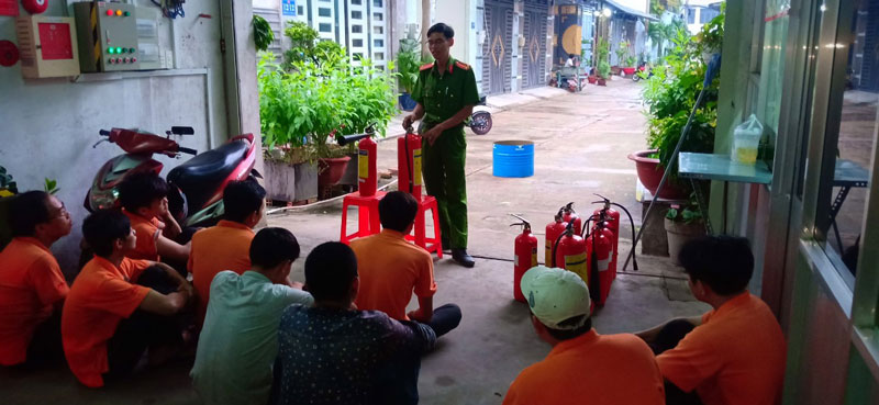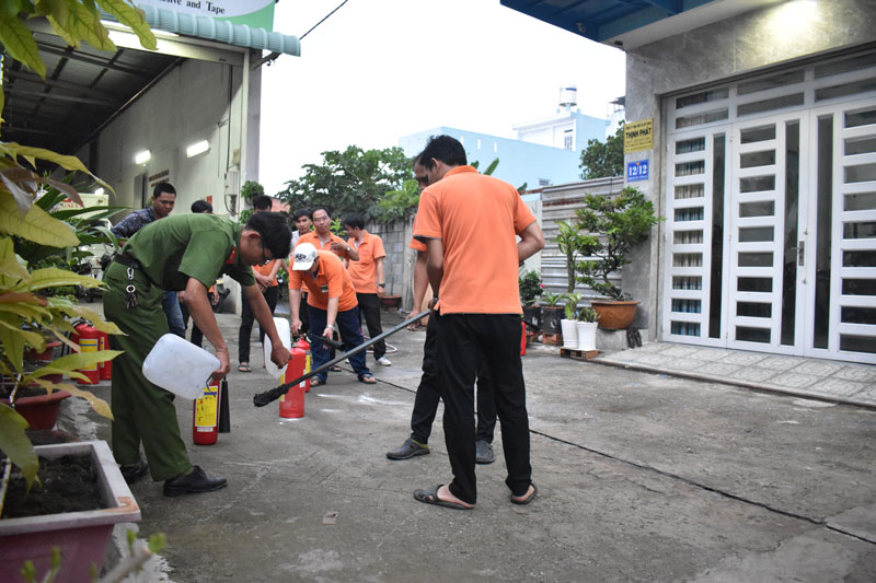 Buổi tập huấn phòng cháy chữa cháy do 1 chiến sĩ công an đứng lớp hướng dẫn cho 10 nhân viên làm việc tại kho hàng của Galup đã diễn ra trong không khí rất nghiêm túc.